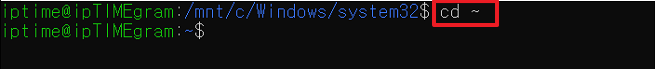 2) [cd ~] 명령어를 입력하여 홈(home)디렉토리로 이동합니다.