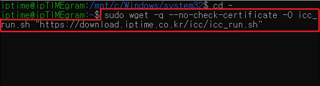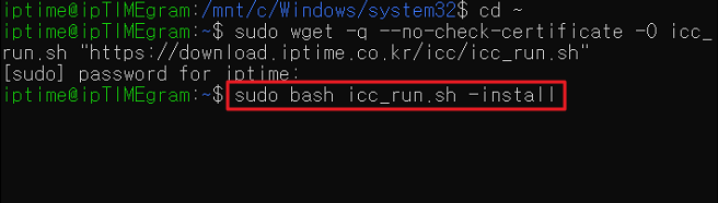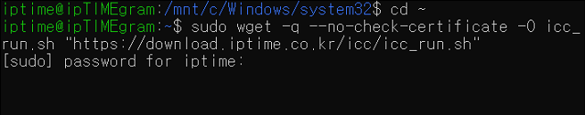 3) [sudo wget -q --no-check-certificate -O icc_run.sh https://download.iptime.co.kr/icc/icc_run.sh]명령어를