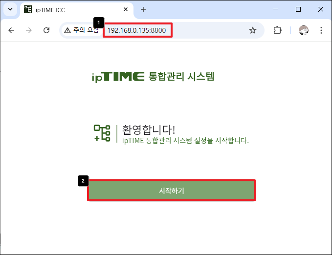 10) 서버 IP 주소가 192.168.0.135이고, 설정한 웹 접속 포트 번호가 8800일 경우, http: //192.168.0.135:8800 으로