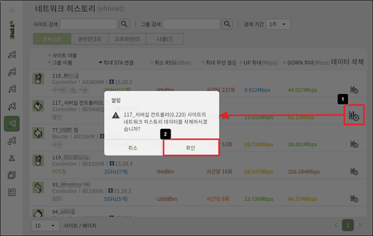 ※ 삭제된 [네트워크 히스토리] 데이터는 복구할 수 없습니다.