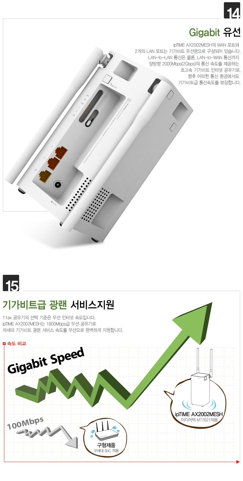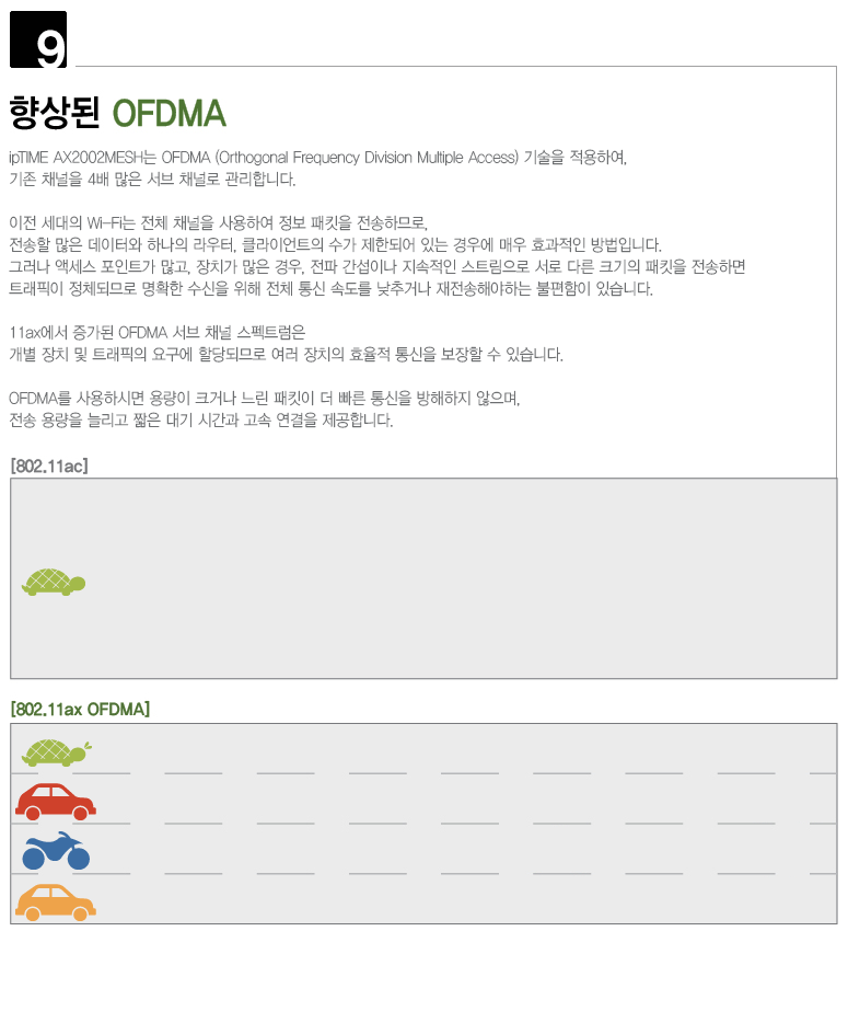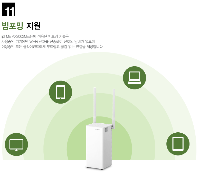 ipTIME AX2002MESH는 802.11ax는 물론이고 802.11ac와 802.11abgn 모두를 지원하여