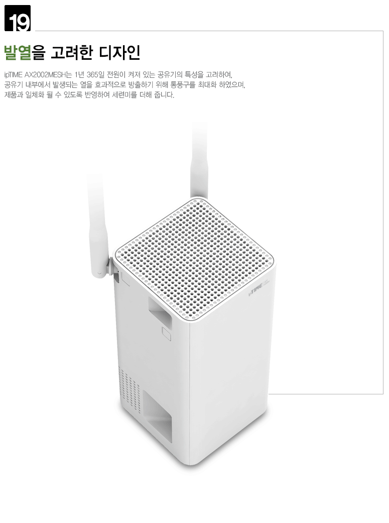 ipTIME AX2002MESH에는 2Tx-2Rx 11ax 무선에 최적화된 5dBi의 고감도 안테나가 적용되어