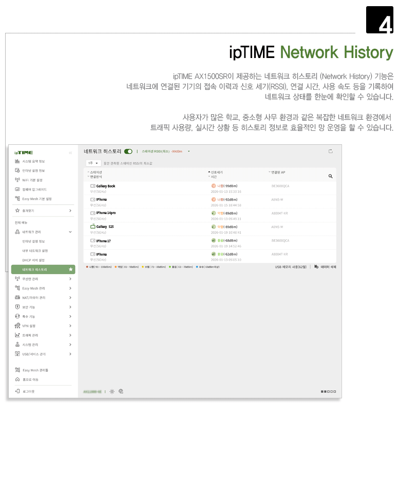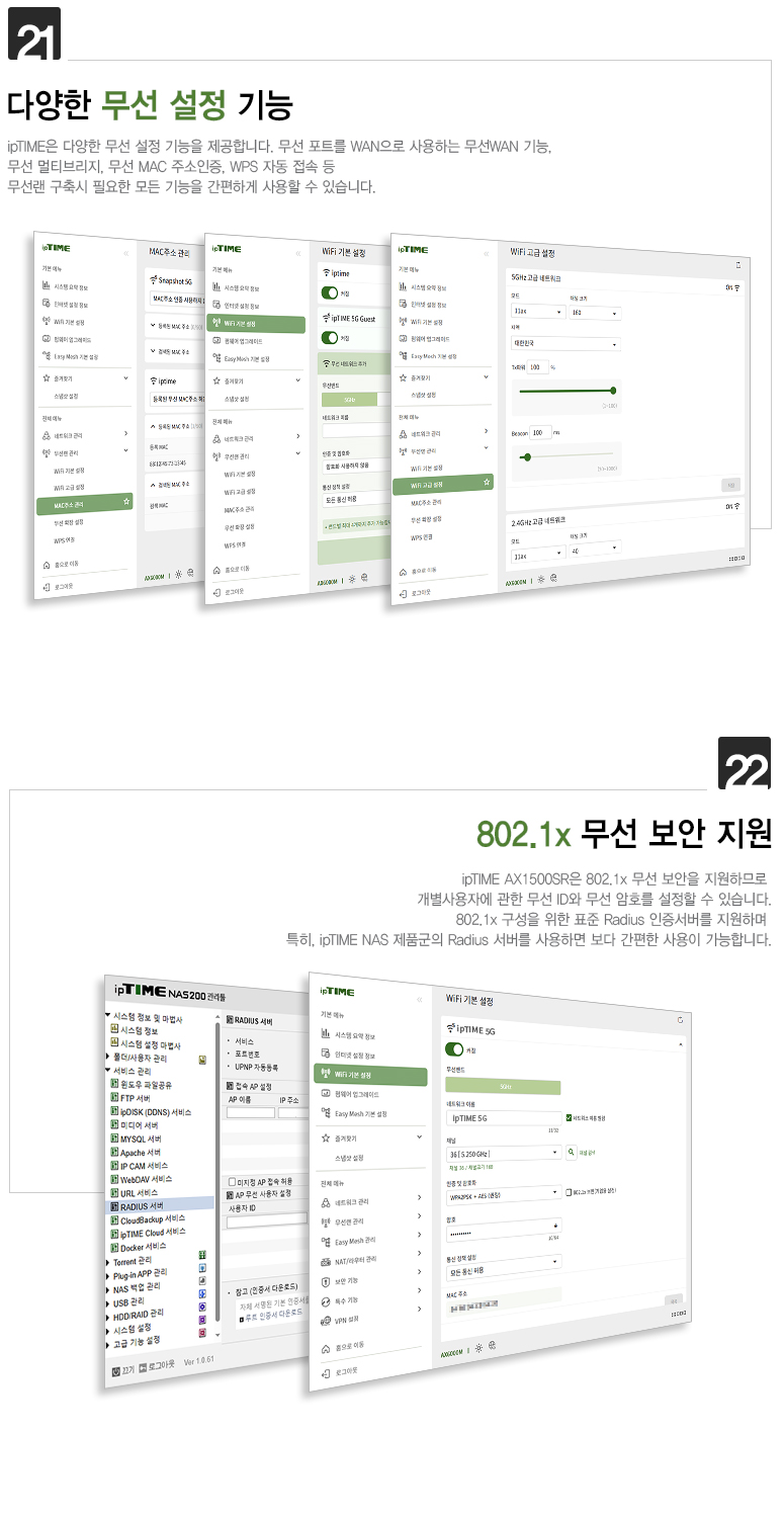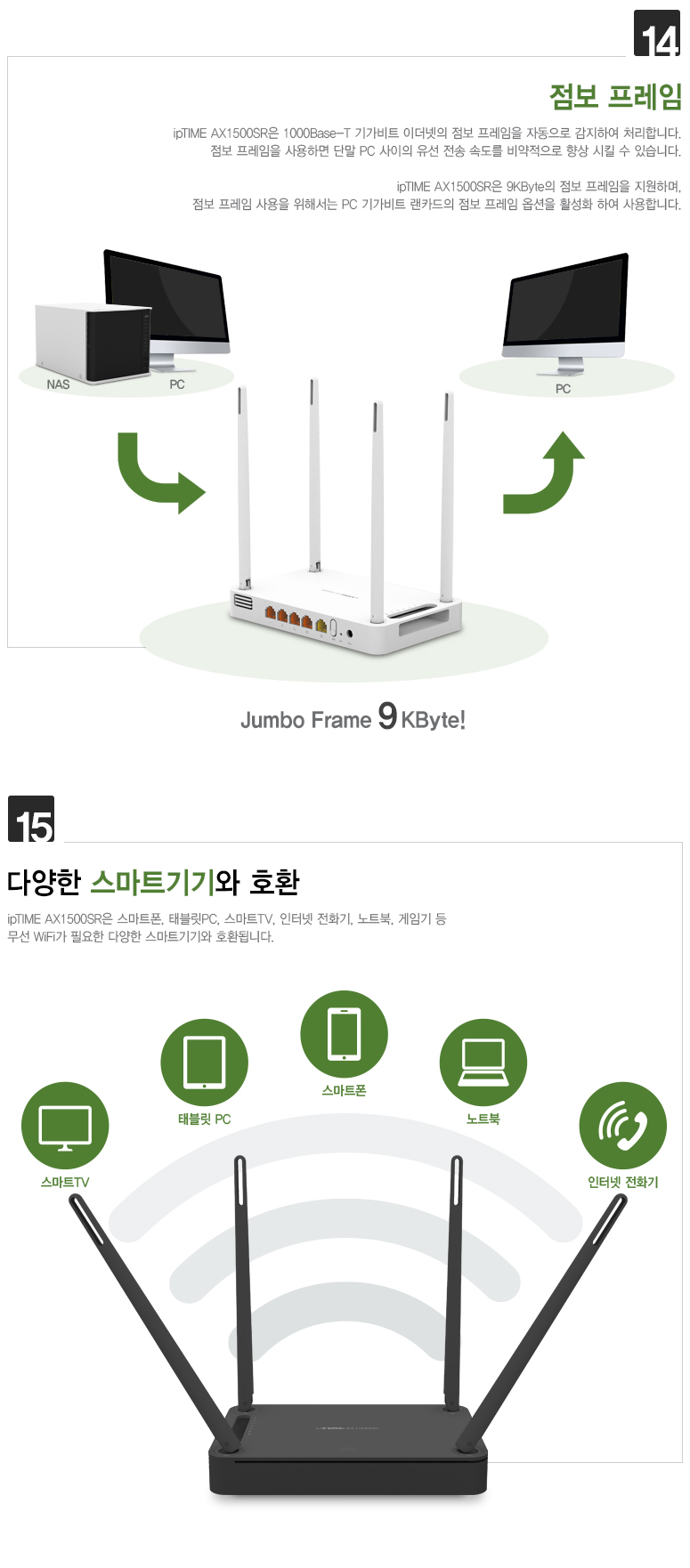 ipTIME AX1500SR은 802.11ax는 물론이고 802.11ac와 802.11abgn 모두를 지원하여