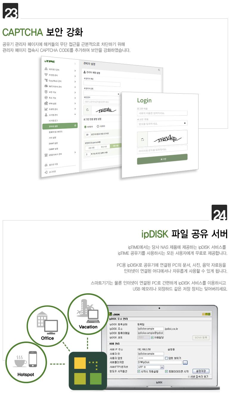 초보자나 전문가 누구나 ipTIME의 모든 기능을 자유롭고 자신있게 사용할 수 있습니다.
