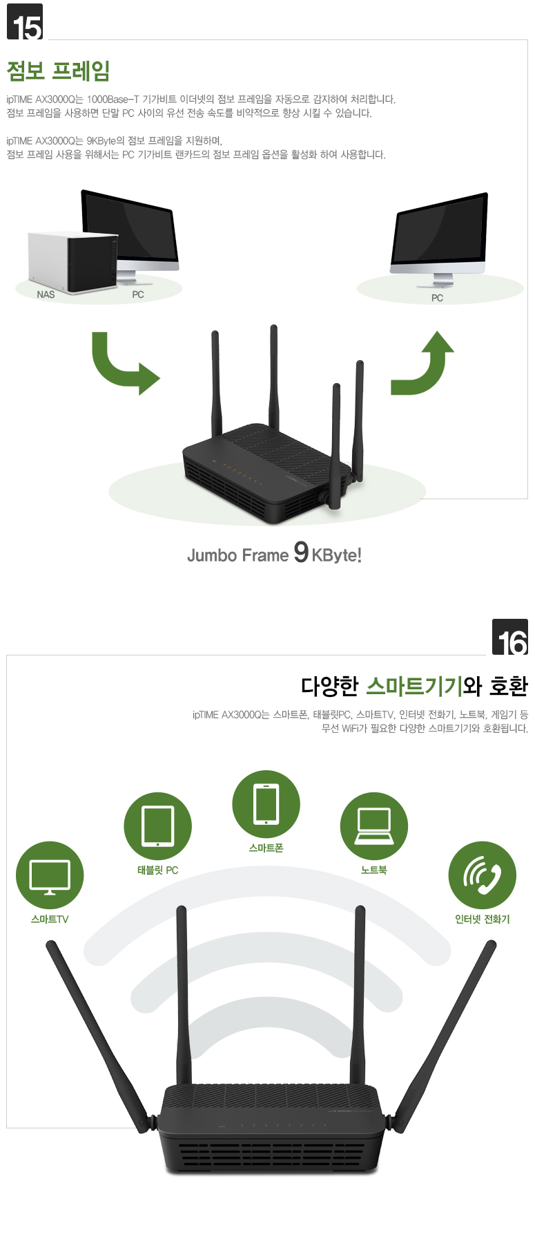 ipTIME AX3000Q는 802.11ax는 물론이고 802.11ac와 802.11abgn 모두를 지원하여