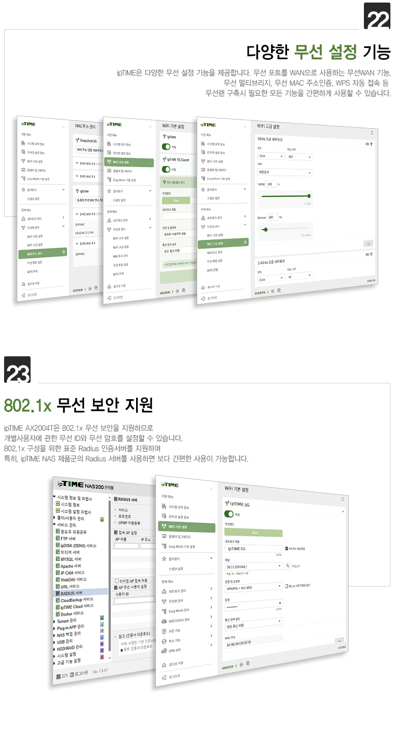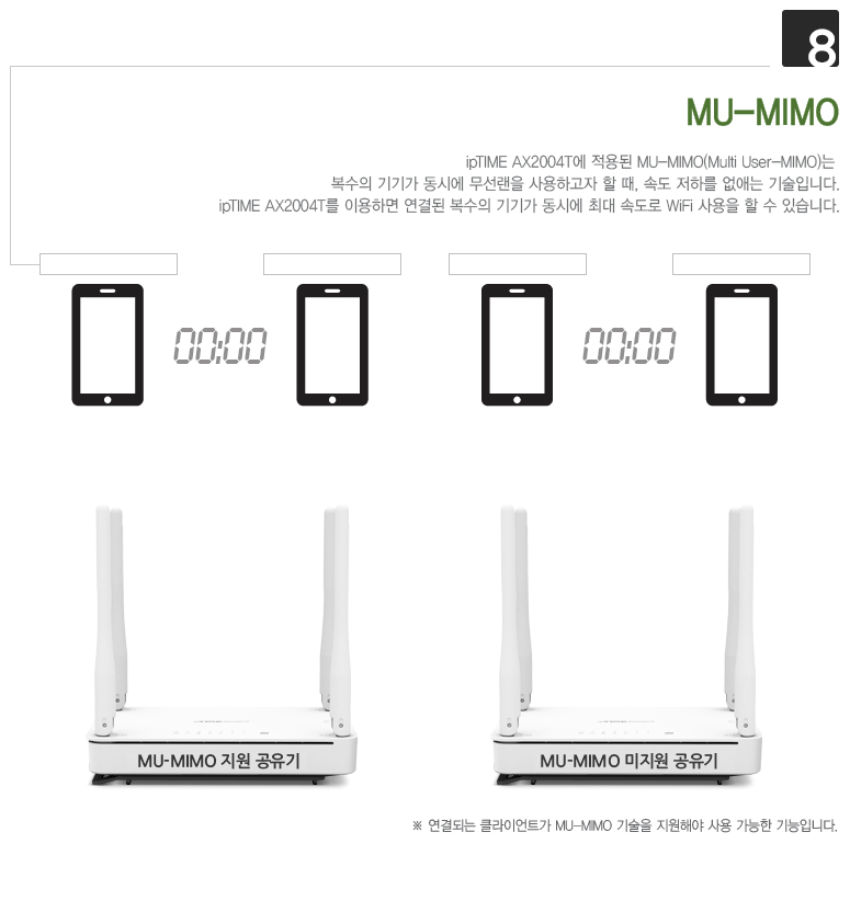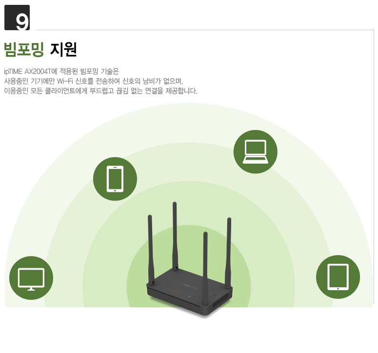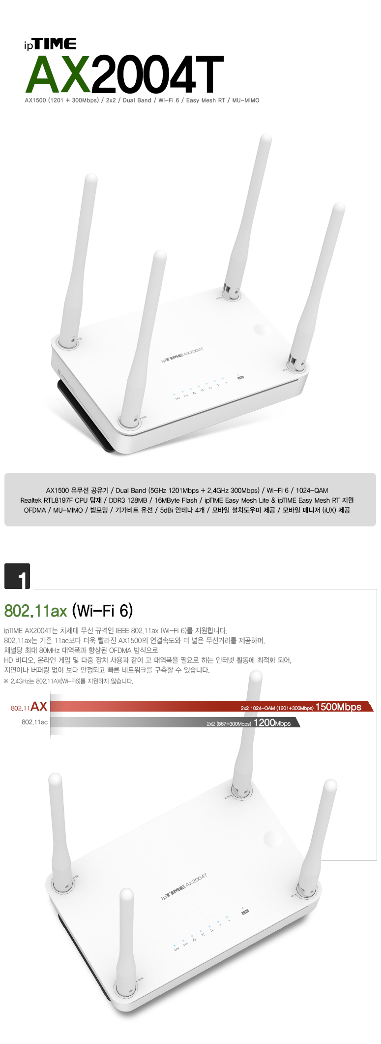 ipTIME AX2004T는 802.11ax는 물론이고 802.11ac와 802.11abgn 모두를 지원하여
